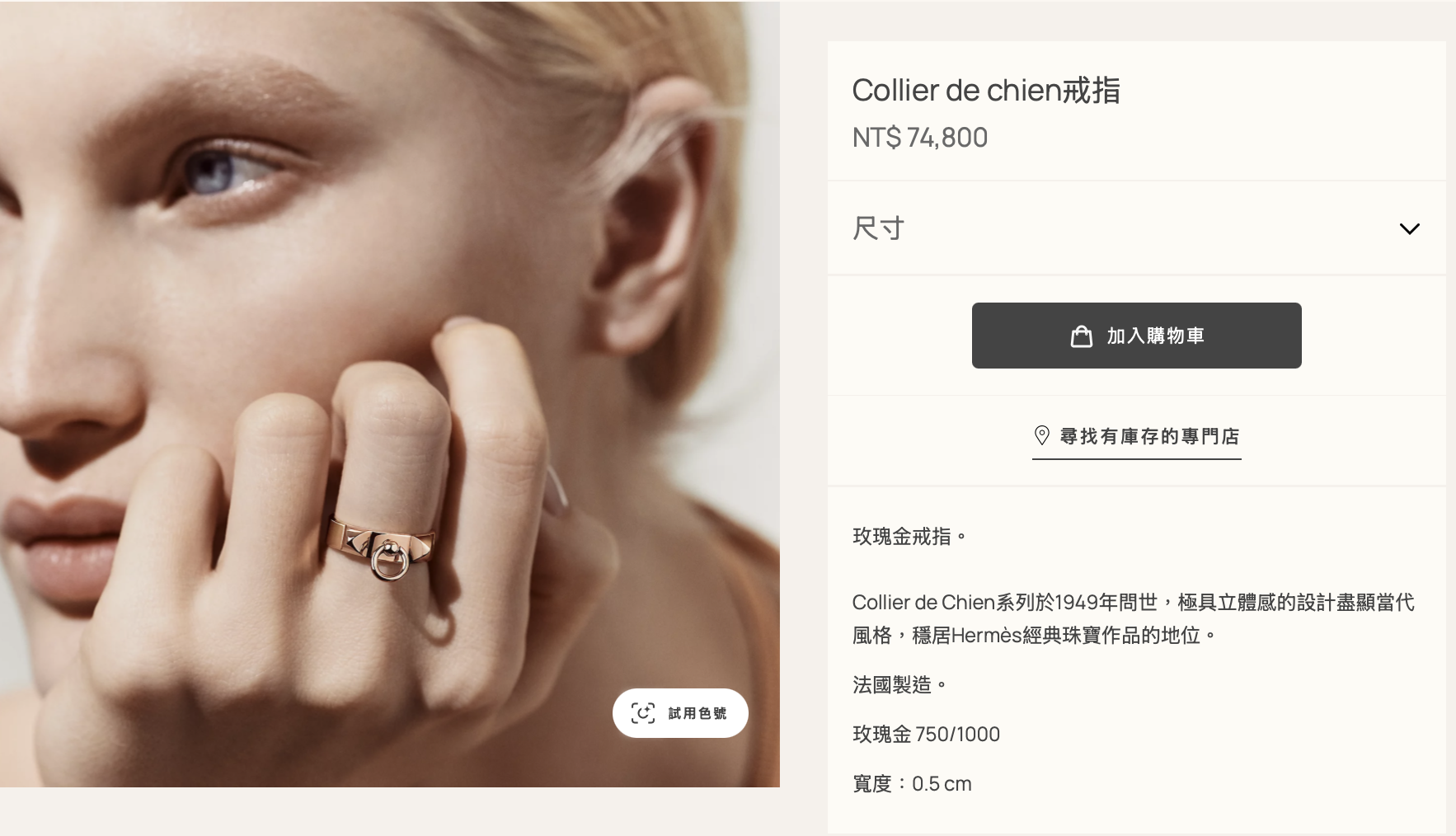 HERMES 全新Collier de chien玫金戒指(24790)